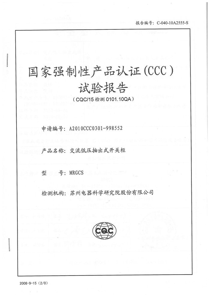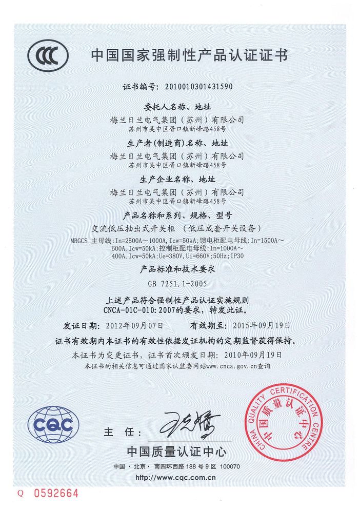 (成套)MRGCS開關(guān)柜資質(zhì)證書