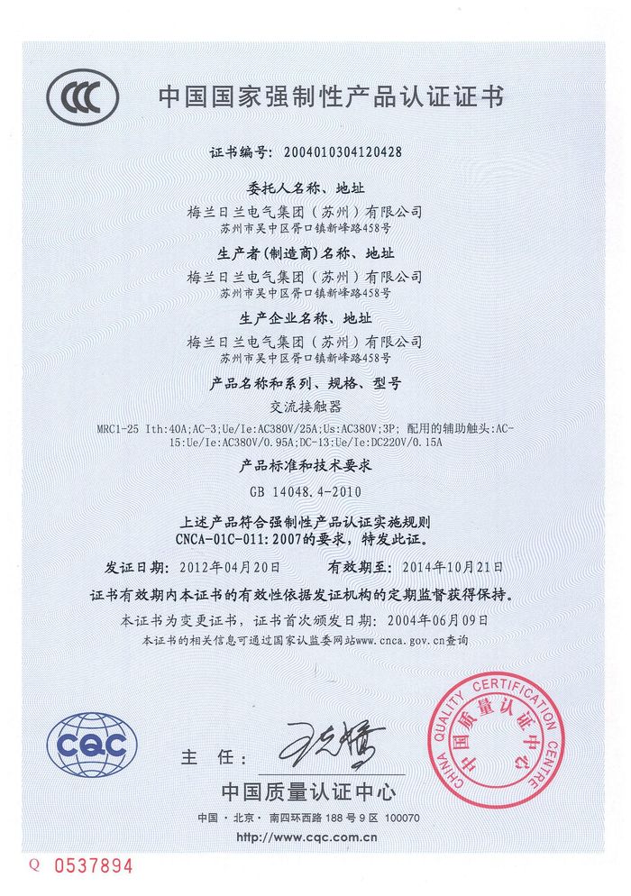 MRC1-25交流資質(zhì)證書