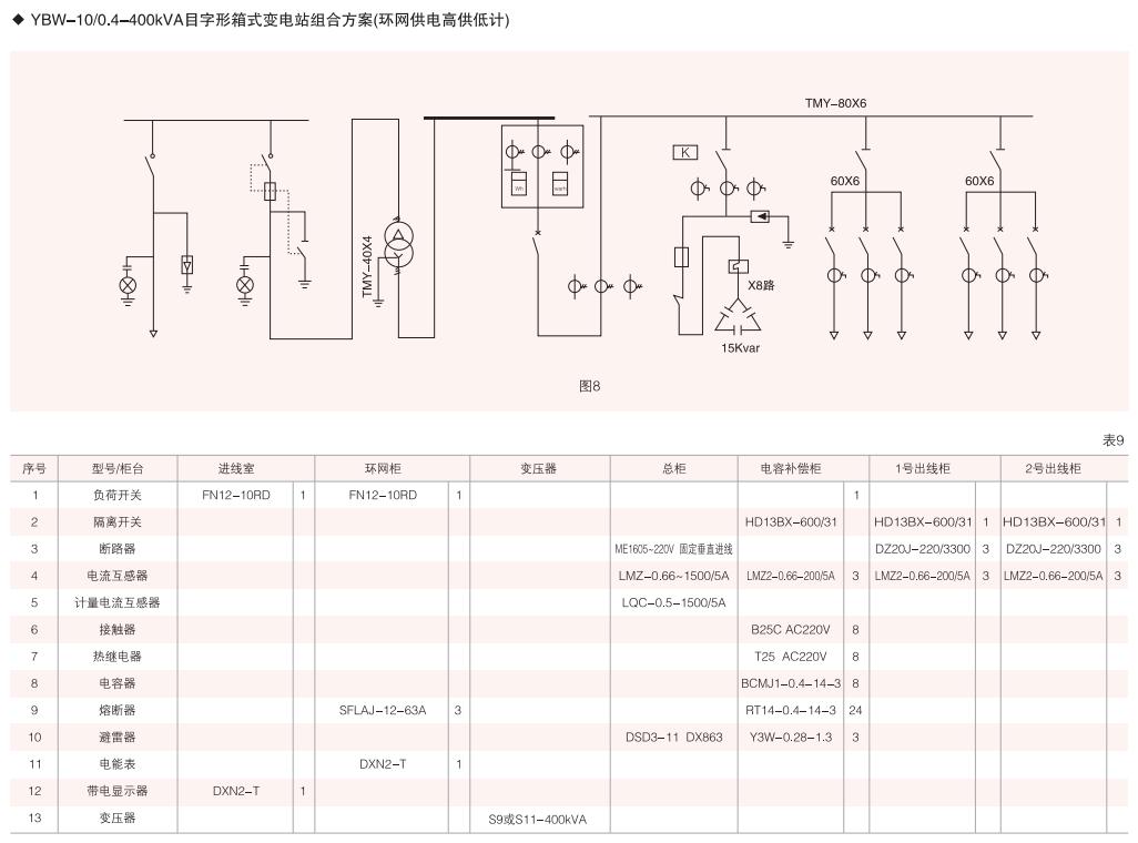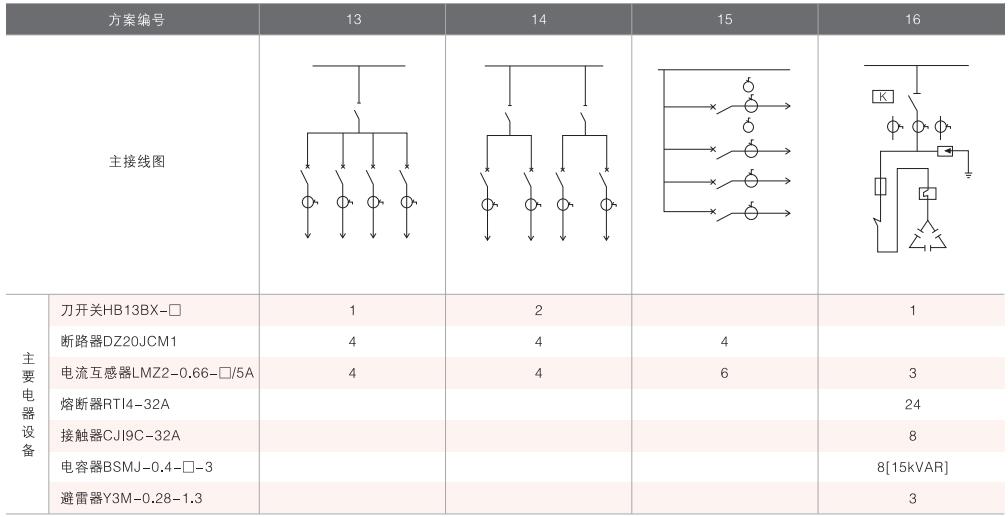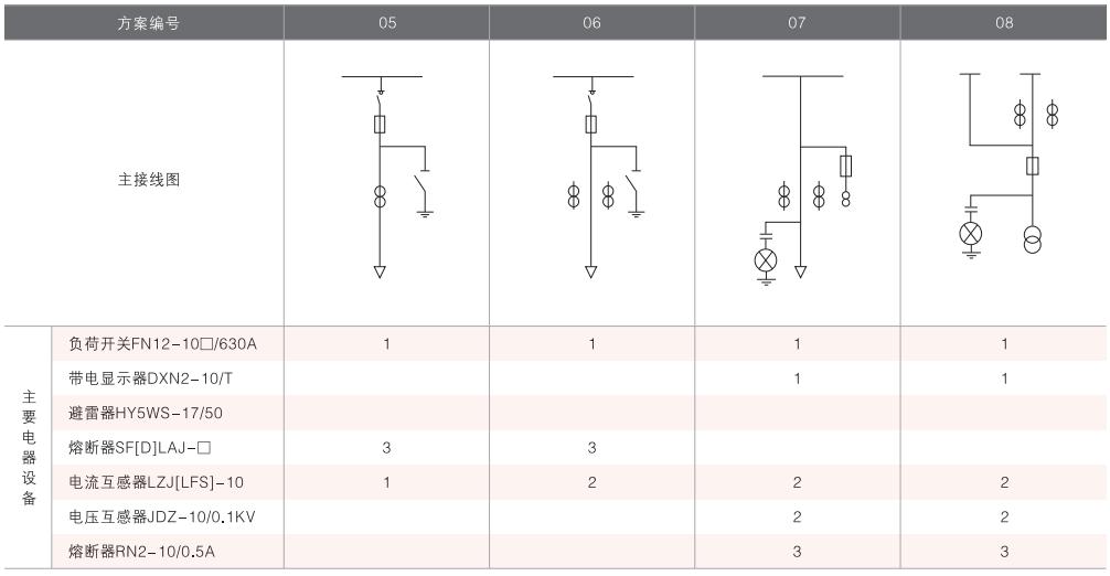 表6~列舉了一些典型組合接線方案,供用戶和設(shè)計(jì)單位參考。(以配裝壓氣式負(fù)荷開關(guān)為例)