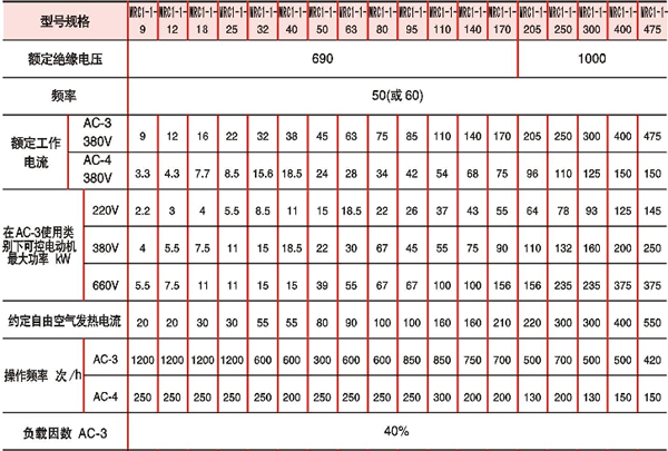 注:熱過載繼電器的整定電流應(yīng)≤接觸器的額定工作電流,吸引線圈電壓的其它規(guī)格可特殊定貨。