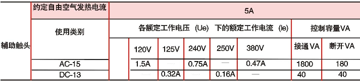 2、輔助觸頭技術(shù)參數(shù)