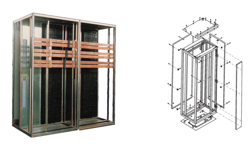 柜體基本結(jié)構(gòu)為本公司適用組合式結(jié)構(gòu).以C型型材(基本模數(shù)E=25mm)為主要結(jié)構(gòu)件,采用鎖緊自攻螺釘和8.8級高強度螺栓緊固而成,因而柜體精度高、剛性好、接地連續(xù)性好。