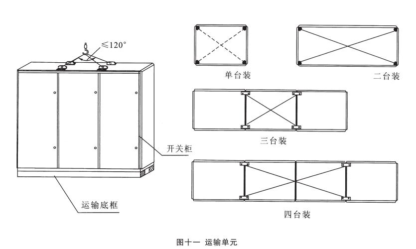 運輸單元:產(chǎn)品分四種規(guī)格的運輸單元:單臺裝、二臺裝、三臺裝和四臺裝。但總長度不得超過3m,見圖十一。